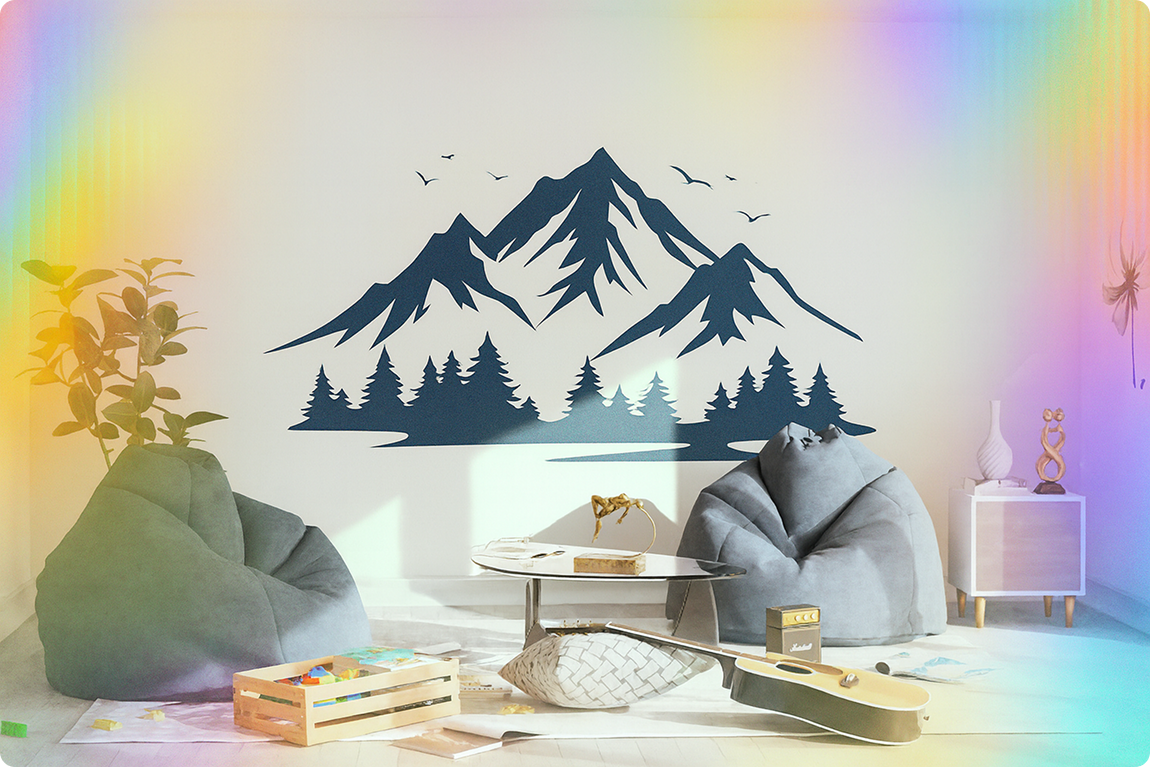 Печатаем на УФ-печати рисунки на зеркале, таблички, рисунки на холсте, интерьерные стикеры, напольные наклейки, модульные картины.